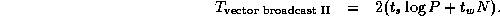 This algorithm is efficient for small N and P . For larger problems and processor configurations, it has the disadvantage that most processors are idle most of the time and the total time is dominated by the term. In these situations, it can be more efficient to break the message into pieces and then to route these pieces separately by using the hypercube communication structure. Communication costs are then approximately as follows (the chapter notes provide pointers to descriptions of this algorithm):