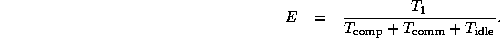Recall that efficiency E is defined as the ratio between execution time on a single processor and total execution time summed over P processors: