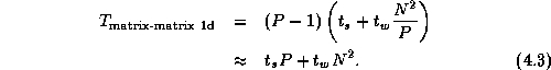 Comparing this expression with Equation 4.3, we see that the algorithm that reorganizes data structures to a 2-D decomposition before performing the multiplication will be more efficient than an algorithm that does not, when