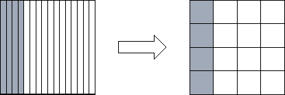 Figure 4.13: Reorganizing from a one-dimensional to a one-dimensional decomposition of a square matrix when P=16. Shading indicates one set of four tasks that must exchange data during the reorganization.