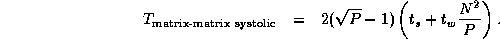 Each of the steps in this algorithm involves a broadcast to tasks (for A' ) and a nearest-neighbor communication (for B' ). Both communications involve data. Because the broadcast can be accomplished in steps using a tree structure, the per-processor communication cost is