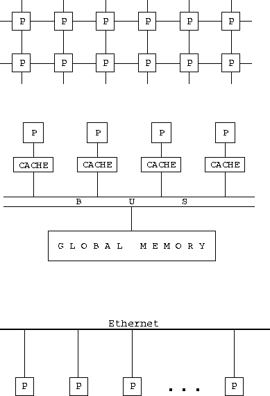 We review important parallel computer architectures (several are illustrated in Figure 1.6) and discuss briefly how these differ from the idealized multicomputer model.